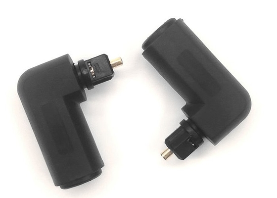 Un adaptador óptico de ángulo recto Toslink de alta calidad totalmente moldeado para convertir un cable TOSLink estándar en una conexión rotable de 90 grados.