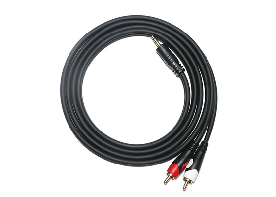 Nombre de producto: Sección doble de 3.5M M al audio plano del acento 2RCA y cable de vídeo 3.5M M expuestos: 15M M